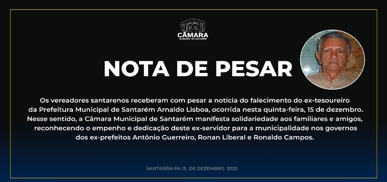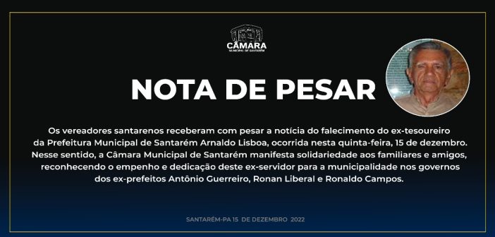 Os vereadores santarenos receberam com pesar a notícia do falecimento do ex-tesoureiro da Prefeitura Municipal de Santarém Arnaldo Lisboa, ocorrida nesta quinta-feira, 15 de dezembro.