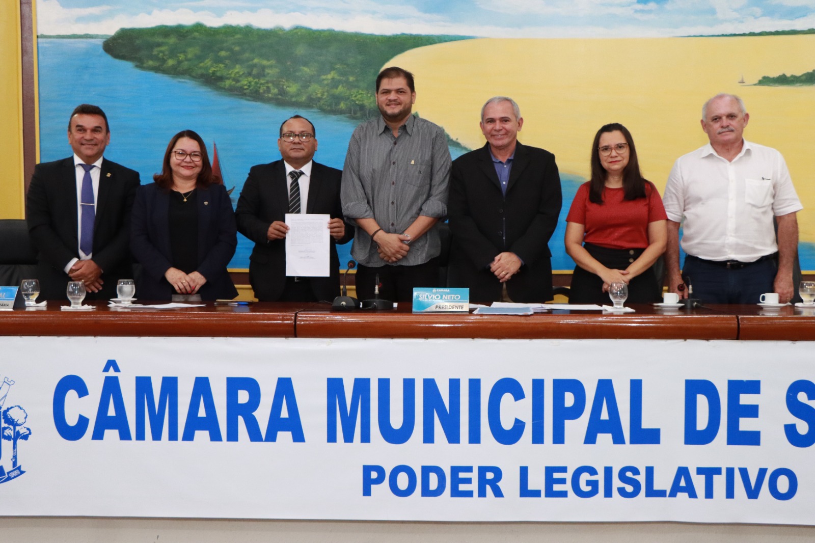 Silvio Neto, presidente da Câmara Municipal de Santarém, conduziu os trabalhos e falou sobre a alegria deste momento. “A gente recebeu,oficialmente, de acordo com o que reza o regimento da Casa, o primeiro suplente do vereador Aguinaldo Promissória, que infelizmente já não está mais entre nós. Mas os trabalhos precisam seguir e este Poder acolhe com muito carinho o mais novo vereador”, ressaltou.