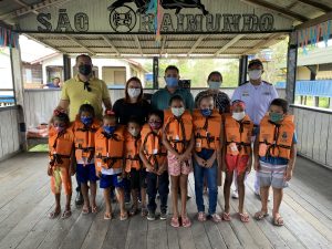Na ocasião, foi realizada uma palestra sobre a importância do uso de colete salva vidas e segurança na navegação. Teve também doação de coletes aos ribeirinhos.