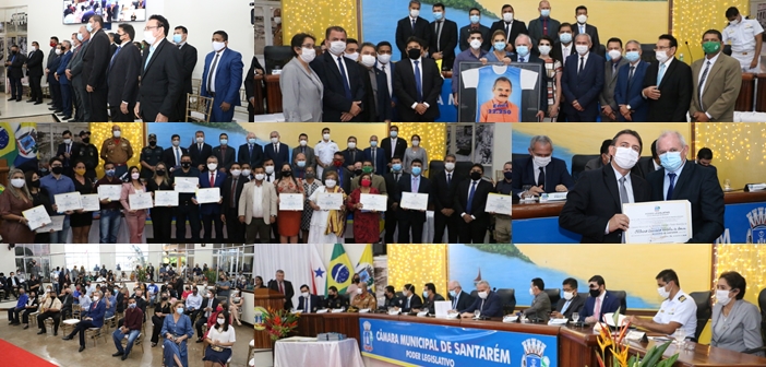 Tradicionalmente, o último ato em plenário do ano, a Sessão Solene de entrega de títulos de Honra ao Mérito e de Cidadão de Santarém, em 2020, realizada na quinta-feira (17/12), no Plenário da Câmara Vereador Benedito Magalhães, representou ainda o encerramento da 18ª legislatura, por isso teve o tom de despedida dos 21 vereadores que a compuseram durante o quadriênio 2017/2020, embora seis deles permanecerão no próximo ciclo do Legislativo Municipal. Como não poderia ser diferente, houve muita emoção e gratidão no evento, organizado pela qualificada equipe de cerimonial e demais departamentos de apoio da Casa.